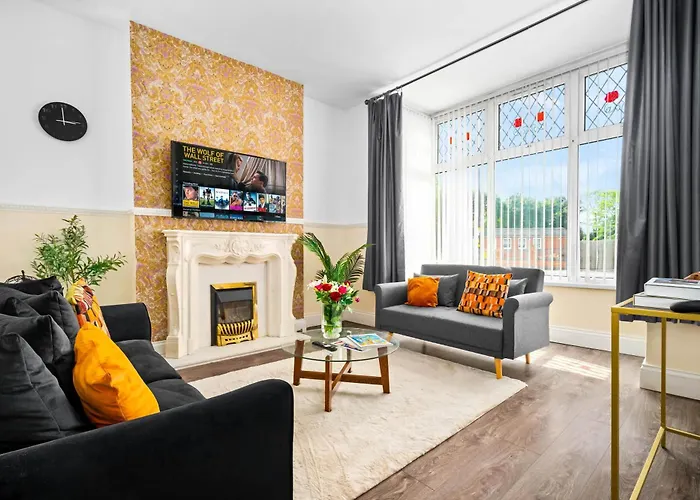 Bienvenido a la encantadora **Modern 6-Bedroom Home - Sleeps 12 - Parking - Garden 568P**, un refugio perfecto para familias o grupos que buscan comodidad y estilo en Birmingham. Este alojamiento se sitúa a solo 3.5 km de los emblemáticos Birmingham Back to Backs, un destino ideal para explorar la historia local. A 1.5 km, también encontrarás la prestigiosa Universidad de Birmingham, lo que lo convierte en un lugar ideal para quienes visitan la ciudad por estudios.
